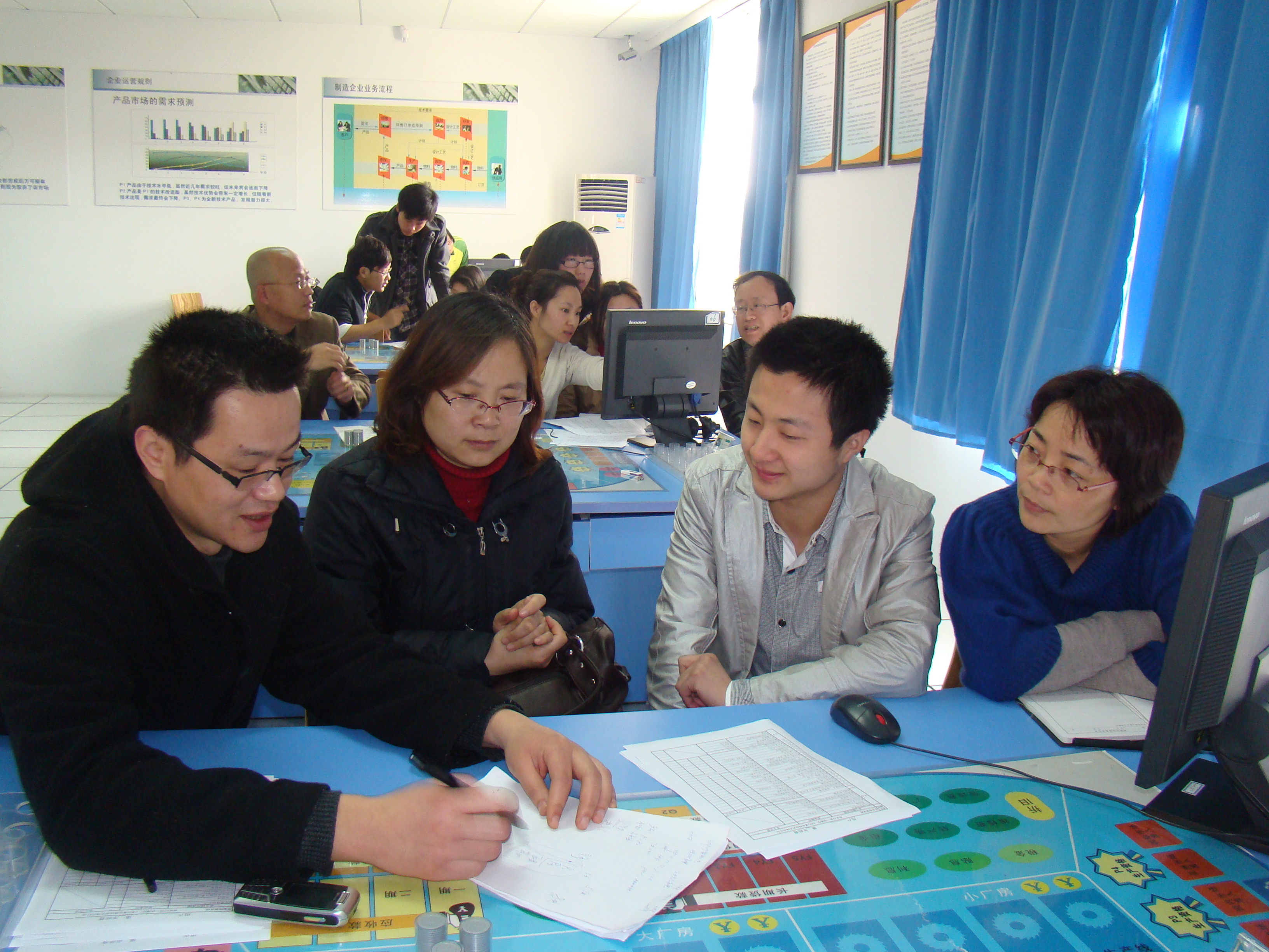 ERP沙盘模拟培训与研讨交流会于4月10日在经管实验中心ERP沙盘模拟实验室如期举行。pg麻将胡了2 领导钱方明院长出席了此次交流会并讲话。通过培训,所有参加交流会的老师和学生分编在六个对抗运营组里,进行了共计三年的实际对抗模拟,最后进行了相互交流。