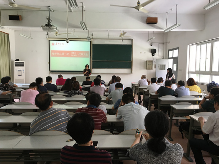 6月7日下午,pg麻将胡了2 三届一次教职工暨工会会员代表大会在教一149顺利召开,43名正式代表出席大会。