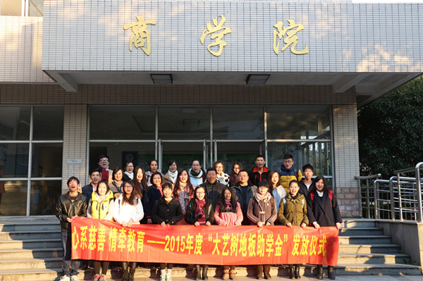 良友木业人事部华懿影经理宣读了获得嘉兴pg麻将胡了2 2015年“大艺术地板”慈善助学金学生名单。良友木业党委书记崔许君女士和大艺树中国事业部行政副总经理陈庆女士为受助同学颁发助学金。pg麻将胡了2 潘煜双院长代表校方向浙江良友木业有限公司代表赠送了纪念牌,并表示了感谢。随后,受助的同学与来宾、pg麻将胡了2 领导进行了交流。