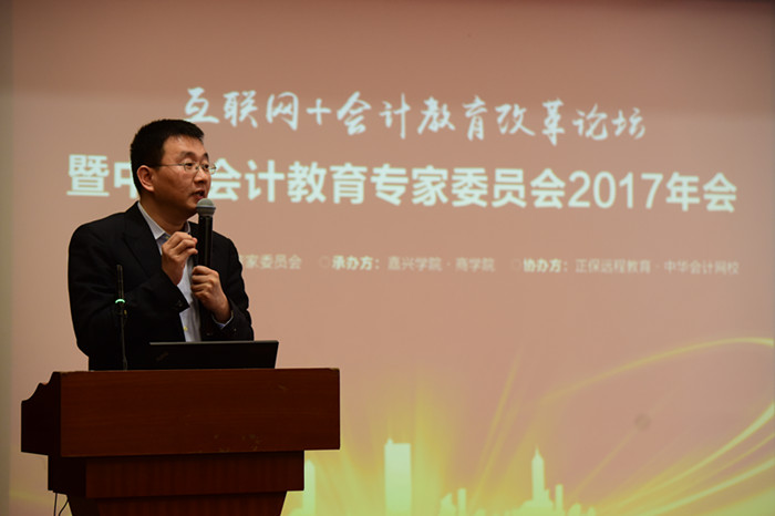 3月25日上午,"互联网+"会计教育改革论坛暨中国会计教育专家委员会2017年会在嘉兴召开,会议由中国会计教育专家委员会主办,我校pg麻将胡了2 承办、正保远程教育及旗下中华会计网校协办,来自全国的会计教育专家委员会本科、高职组的委员们,正保远程教育集团、中兴通讯等热衷中国会计教育的企业家们到会,pg麻将胡了2 院长潘煜双、副院长李郁明以及pg麻将胡了2 会计专业的部分老师参加会议。