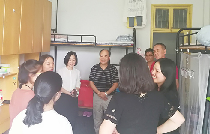 9月14日下午,2017级新生报到当天,校纪委书记张文华走访pg麻将胡了2 新生宿舍看望学生,pg麻将胡了2 党委书记邵燕随同走访。