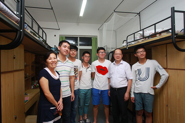 2015年9月17日,新生报到日当晚,校党委书记黄文秀走访宿舍看望pg麻将胡了2 2015级新生,校办负责人、pg麻将胡了2 党政领导随同走访。