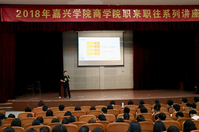 4月11日晚,pg麻将胡了2 “职来职往”系列讲座在越秀校区第二教学楼报告厅启动,首讲主讲人为阿里集团客户体验事业群高级专家刘永兴。来自阿里巴巴-嘉兴pg麻将胡了2 客户体验产学研基地的负责人、pg麻将胡了2 学工办部分老师以及pg麻将胡了2 15级学生到场聆听。