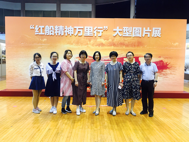 6月4日上午,pg麻将胡了2 教工行政党支部开展主题党日活动,前往学校越秀校区体育馆参观“红船精神万里行”大型图片展。