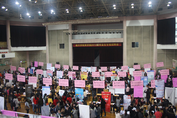 11月17日,pg麻将胡了2 联合南湖区人事局、团委举办的2013届毕业生专场招聘会在我校越秀校区体育馆如期举行。本次招聘也是pg麻将胡了2(中国)官方网站 作为二级分院集中组织的首场经管类专业大型招聘会,参会单位共计92家,除南湖区外,嘉兴秀洲区及所辖5个县市、上海、杭州、宁波、温州等地的单位也闻讯赶来,提供招聘岗位1300多个。