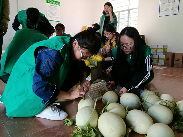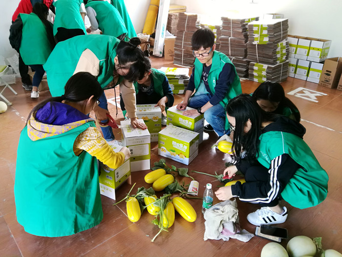 活动现场,pg麻将胡了2 “双百双进”志愿服务小分队兵分两组,一队驻点在村部,与嘉善县县级青年文明号联动服务,宣传垃圾分类宣传,与当地村民进行垃圾分类小游戏互动;二队前往马家桥村甜瓜生产基地电商服务点,学习农村电商知识,共同参与甜瓜的物流配送工作,帮助基地进行甜瓜分类、称重、包装等,还结合商科特色、利用专业知识、根据当地实情,为马家桥村甜瓜销售的电商运营献计献策,为助力嘉善乡村振兴发展战略贡献一份青春力量。