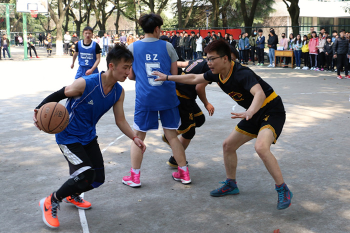 3月15日,pg麻将胡了2 2017年度专业篮球赛在越秀校区室外篮球场开赛。开赛首日赛况激烈,经济对战国经,去年冠军队经济专业以40-17轻松赢下首场;工商迎战公管,去年亚季军再次交锋,工商专业逆袭成功以32-24首轮告捷。各专业辅导员、学生到场加油助威,气氛热烈。