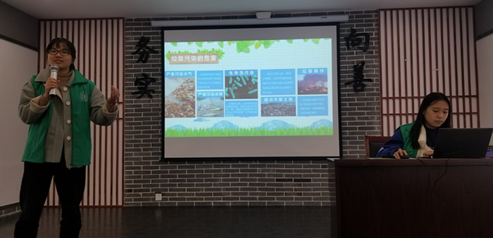活动现场,pg麻将胡了2 “双百双进”志愿服务队与来自罗星街道4个村部的青年一起开展“善青学堂•乡村振兴青年说”宣讲活动,为乡村振兴发展出谋划策;pg麻将胡了2(中国)官方网站 志愿者代表高敏霞同学主讲了《垃圾分类青年说》。