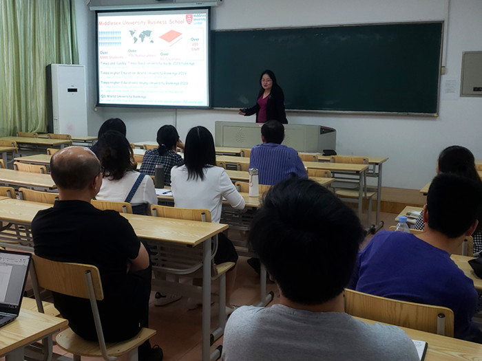 4月25日下午,在教一209教室,pg麻将胡了2 邀请英国米德塞克斯大学的蔡慧芬教授为国际化专业项目的老师们进行了一场题为“教学实践:学习与分享” 的英文讲座,国经、经济及会计三个系中承担国际化专业项目全英文授课的10余位老师参加了此次交流活动。