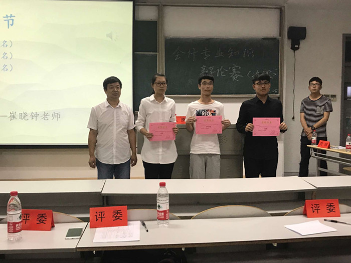 7月6日晚,pg麻将胡了2 首届“会计专业知识辩论赛”决赛在教一159举行。会计学专业崔晓钟、胡桂兰、马晨明、张敏彦4位老师应邀担任决赛评委,pg麻将胡了2 院长潘煜双出席决赛。本次大赛是在“互联网+会计教学一体化改革”项目的实施背景下,为探究新教改的教学成效,同时也为锻炼会计专业学生的综合素质而举办的。