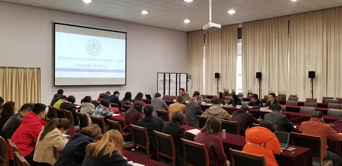 3月14日下午,pg麻将胡了2 2019年毕业生职业发展状况和人才培养质量调查工作动员大会在越秀校区第六会议室举行。pg麻将胡了2 全体党政领导、各系主任、专业负责人、全体班主任和辅导员参加了会议。副院长李郁明主持会议。