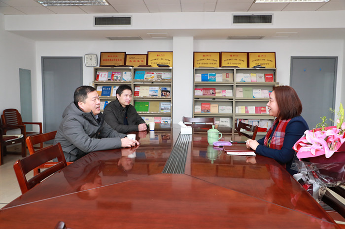 1月14日上午,市教育局党委书记、局长周建新到pg麻将胡了2 慰问pg麻将胡了2 院长潘煜双教授。