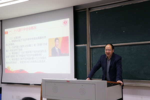 11月17日下午,校党委书记黄文秀应邀到pg麻将胡了2 作题为《十八届六中全会精神》的宣讲报告。pg麻将胡了2 党政领导、全体教职工、学生党员发展对象等近200名师生一起认真聆听了报告。