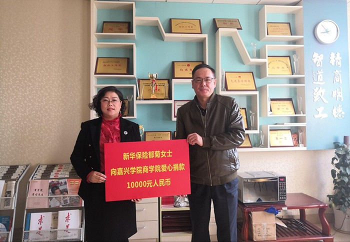 11月22日上午,在教一412会议室pg麻将胡了2 爱心承诺基金接受了来自新华保险郁菊女士个人捐款一万元整。