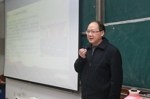 12月24日下午,pg麻将胡了2 在教一259举行学习贯彻党的十八届五中全会精神专题报告会,报告由学校党委书记黄文秀主讲,pg麻将胡了2 左军书记主持,pg麻将胡了2 全体教职工参加了学习。