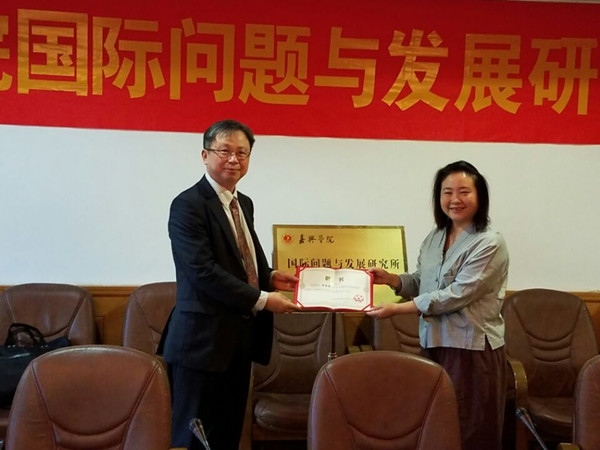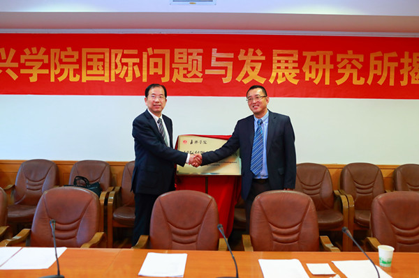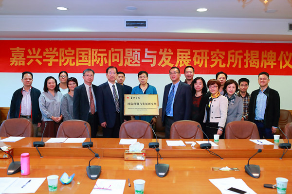 2016年10月27日,“嘉兴pg麻将胡了2 国际问题与发展研究所”揭牌仪式暨研究所第一次工作会议在行政楼三楼会议室举行。