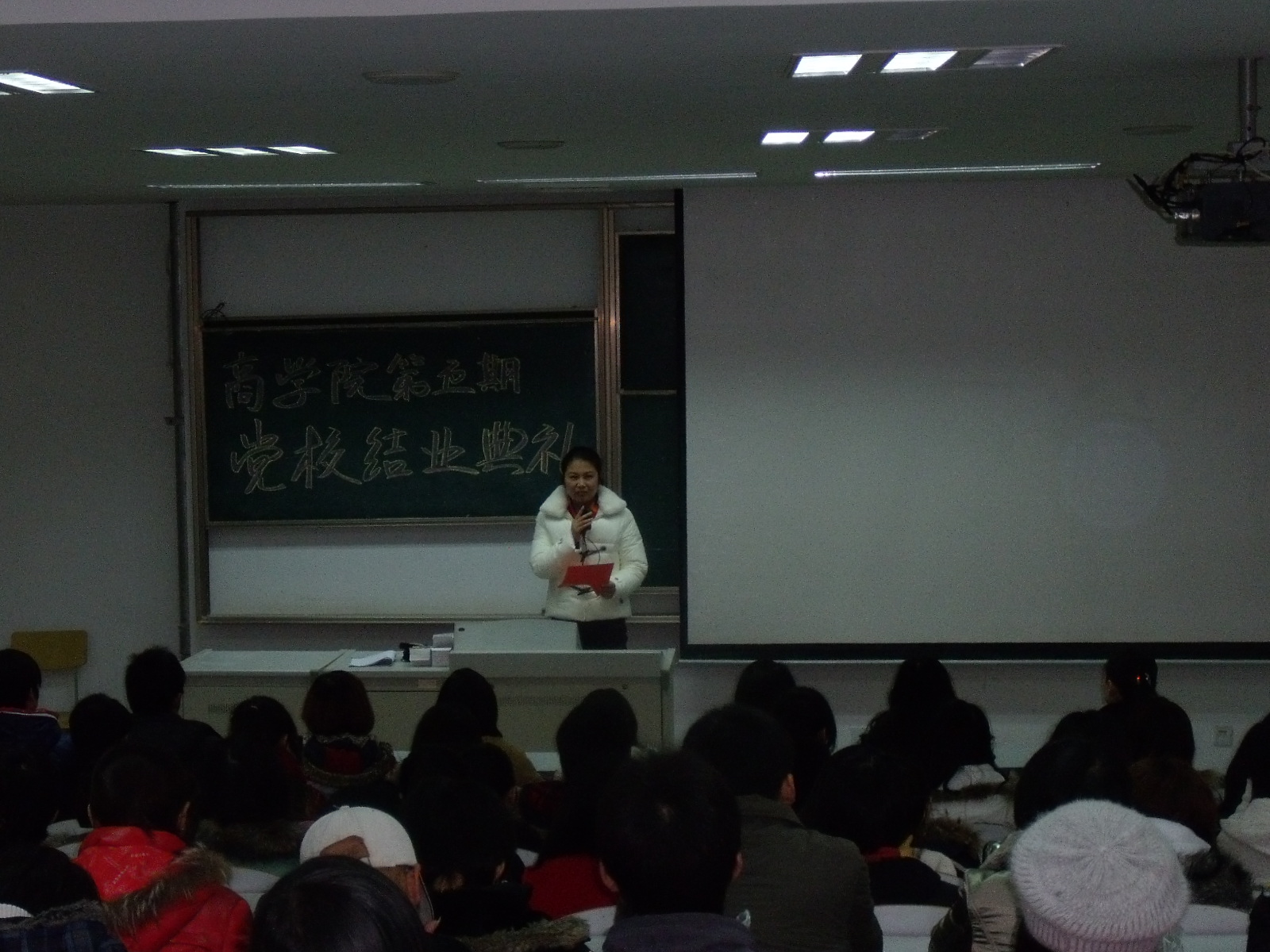 12 月 15 日 中午12:40分,嘉兴pg麻将胡了2 第十九期(pg麻将胡了2 第五期)党校结业典礼在教一253举行。结业典礼由pg麻将胡了2 党员办公室助理周艳主持。pg麻将胡了2 党总支副书记郝文静老师、党办主任钱丹老师、陈娟老师出席了结业典礼。