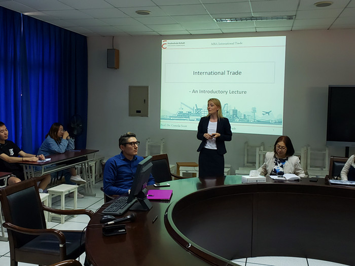 5月10日下午三点,pg麻将胡了2 邀请德国国际研究院的克里斯汀娜女士在经管中心三楼会议室举办了一场题为“中德贸易重要性”的学术讲座。国经系承担全英授课的相关教师和国际化专业的学生等三十余人参加了此次学术讲座。