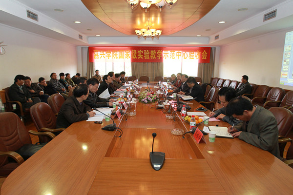我校实验室与设备管理处负责人主持前一阶段会议,严从荃副校长代表学校向专家组和领导介绍了我校实验教学工作和示范中心建设的基本情况;随后专家组组长浙江大学生物实验教学中心副主任王国强教授主持验收会,钱方明主任向各位专家详细汇报了中心建设情况,专家组就自评报告进行了质询,严从荃副校长、钱方明主任分别一一作了回答。汇报会结束后,专家组到经济管理实验中心进行实地考察、查阅相关材料,召开了教师座谈会、学生座谈会。专家组向学校和示范中心反馈了验收意见。专家组充分肯定了我校示范中心的建设成绩并提出了下一步建设的建议。最后,教育厅高教处王国银副处长就示范中心建设提出了希望和建议。