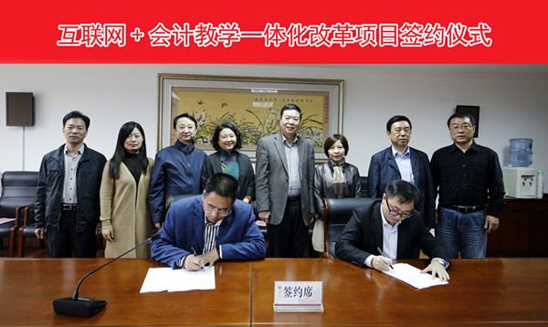 11月14日下午,互联网+会计教学一体化改革项目签约仪式在我校举行。中国会计学会副会长、会计教育专业委员会主任委员刘永泽教授,中国高等教育学会高等财经教育分会副理事长兼秘书长张国才教授,中国会计教育专家委员会秘书长杨政教授,北京正保会计教育科技有限公司副总裁刘温泉先生,正保远程教育教学部副总裁徐建宁教授, 我校社会合作处、pg麻将胡了2 相关负责人及会计专业部分师生代表参加签约仪式。