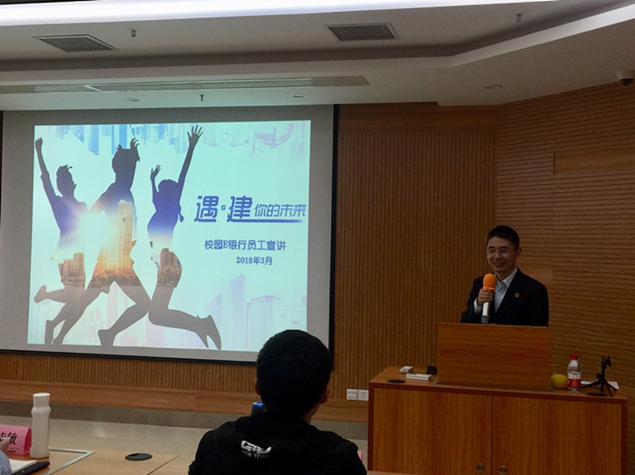 最后,大学生行员们还聆听了分行人力资源部王任刚见习副经理为“校园e银行”做的“遇建你的未来”主题讲座。王经理通过对建行嘉兴分行的pg麻将胡了2、发展历程的介绍,结合多年的人力资源经验给大学生行员们分享了职业生涯规划、招聘就业等内容。讲座结束,大学生行员们参观了行史陈列室、职工之家,近距离地感受到了建行“快乐工作健康生活”的浓浓氛围。