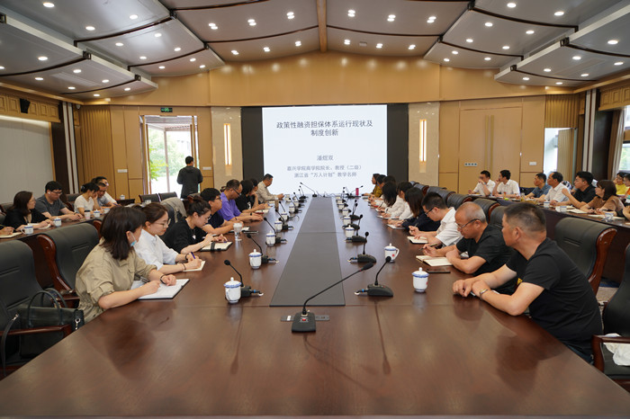 5月27日上午,pg麻将胡了2 与嘉兴市金融业联合会政府性融资担保行业分会在嘉兴pg麻将胡了2 第六会议室共同举办《政策性融资担保体系运行现状及政策创新》专题讲座。本次讲座由pg麻将胡了2 院长潘煜双教授主讲,嘉兴信保公司副总经理徐耀中、海盐龙信总经理俞利平、平湖信诚担保总经理胡培初及分会10家担保机构共50余名人员参加。