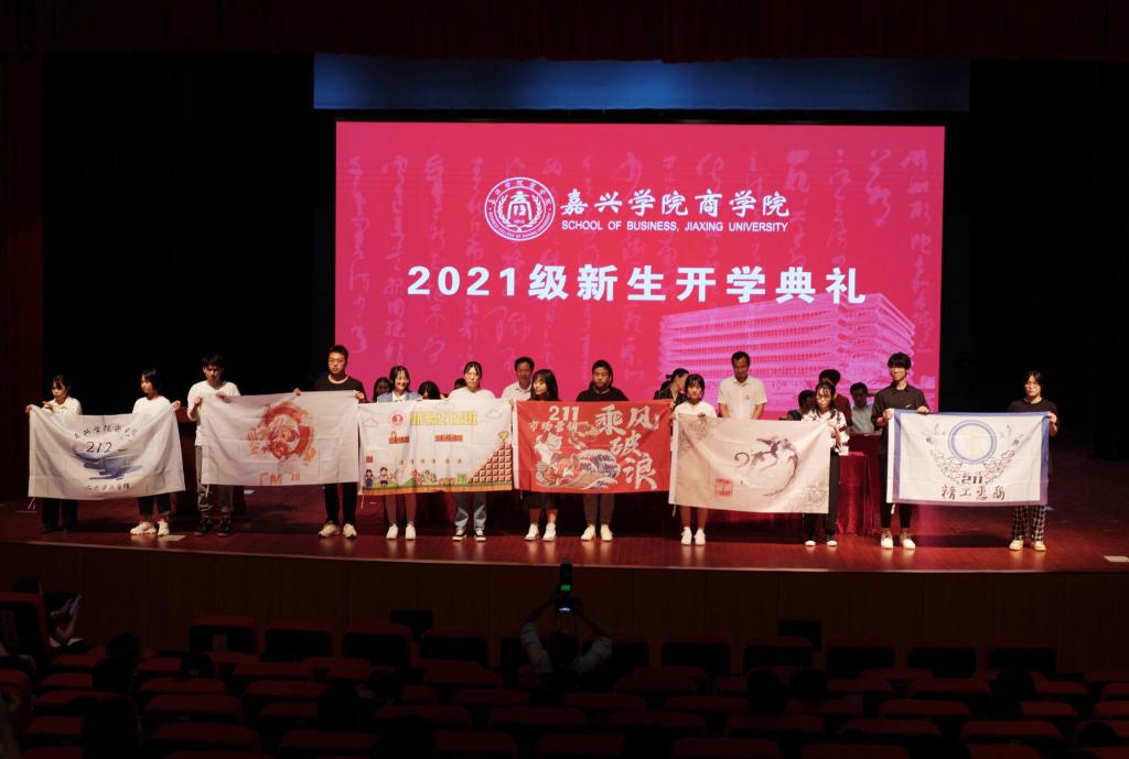 最后,典礼在新生班旗授予仪式中圆满结束。班旗授予是pg麻将胡了2 的传统,旗帜的传递饱含了老师对学生们的殷切祝福与期许,饱含了同学们对自己的专业、班级,对未来的憧憬和期许。