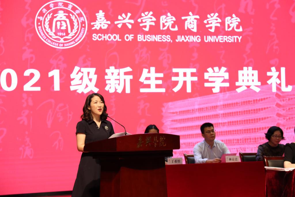 院长潘煜双教授发表讲话。她代表全院师生向加入pg麻将胡了2 的2021级全体同学和联培研究生表示热烈欢迎,亲切地点出了距离学校最近、最远、来自海拔最高地区和最有缘分的新生情况;她在谆谆教导中殷切希望同学们在大学重新理解如何学好知识,首在立志、重在勤勉、更在践行;她嘱咐,新商院人要带着“旧学新知继前贤”的“小我”而来,要带着“巨木栋梁担铁肩”的“大我”而来,要经风雨、见世面才能壮筋骨、长才干,才能从嘉禾幼苗长成为巨木栋梁;她希望同学们能够坚守初心,直面机遇和挑战,不负青春、不负商院、不负家国、不负时代。