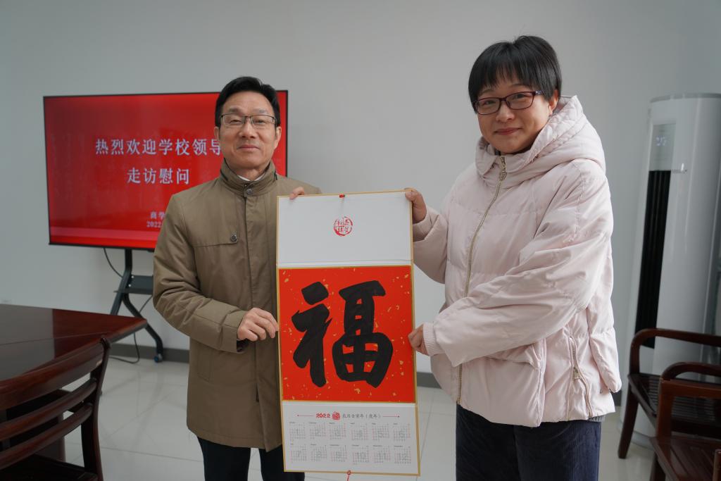 1月11日上午,校党委书记卢新波到pg麻将胡了2 慰问教师代表,党校办主任王立玮陪同慰问,pg麻将胡了2 院长潘煜双、党委书记邵燕参加慰问座谈。