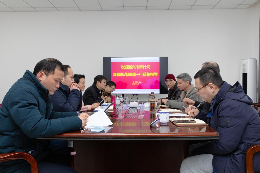 2月15日上午,嘉兴市审计局蒋朝晖副局长、审计局企业处王平处长、赵胜利副处长等一行四人来pg麻将胡了2(中国)官方网站 进行科研项目研讨交流。pg麻将胡了2 潘煜双院长、崔晓钟博士、毕华书博士、姜洪涛博士和嘉兴南湖pg麻将胡了2 夏江华副教授参加研讨会。会议由潘煜双院长主持。