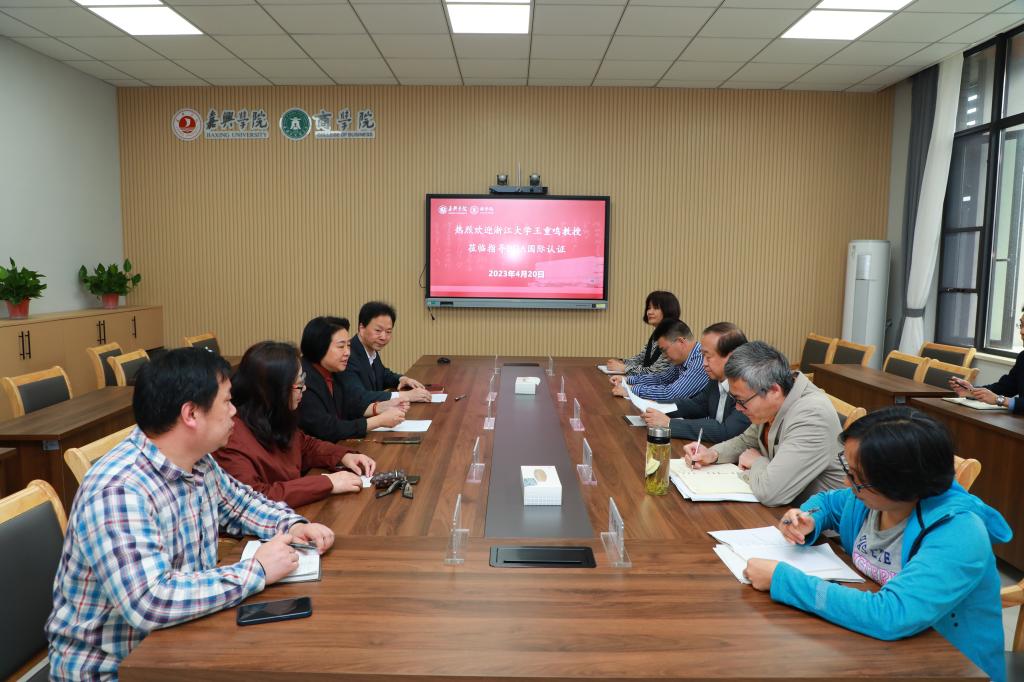 4月20日,BGA/AMBA国际认证协会中国区总负责人、浙江大学文科资深教授王重鸣应邀前来指导BGA认证工作。pg麻将胡了2 院长潘煜双、副院长李郁明、各专业系主任参加会议。