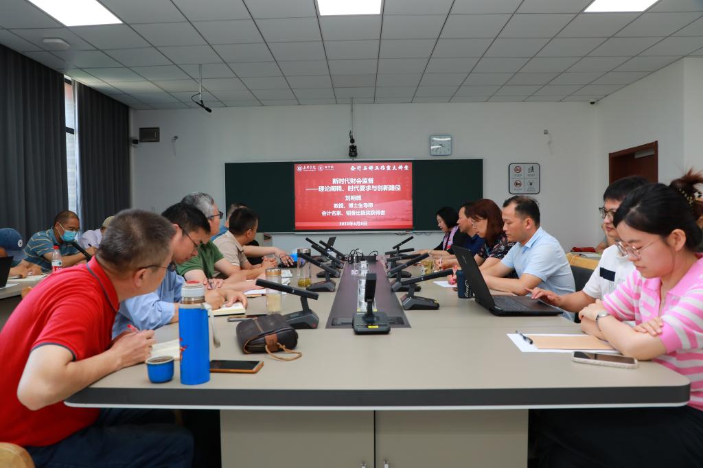 6月8日下午,会计名师工作室大讲堂在经管中心311会议室举行,财政部会计名家、博士生导师刘明辉教授应邀担任主讲。商pg麻将胡了2 院长潘煜双主持,副院长李郁明、会计系和财务管理系的60余名师生到会聆听报告。