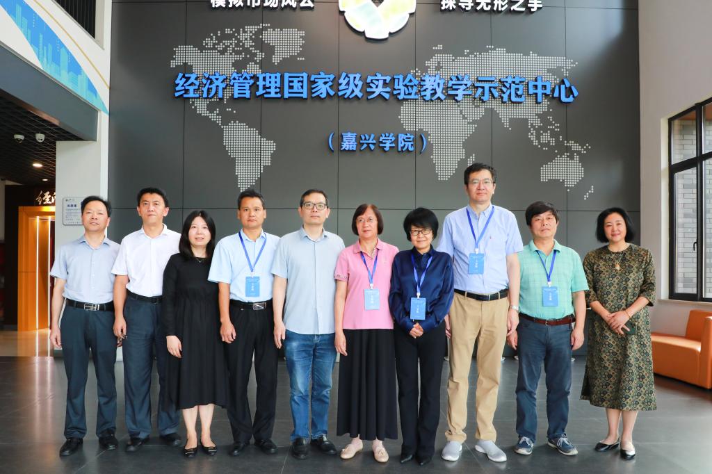 8月16日下午,教育部专家组莅临嘉兴pg麻将胡了2 经济管理国家级实验教学示范中心开展阶段性总结工作现场考察。我校副校长周宏伟,pg麻将胡了2 院长、经济管理国家级实验教学示范中心主任潘煜双,资产与实验室管理处处长杨芬芬等相关部门领导陪同考察。