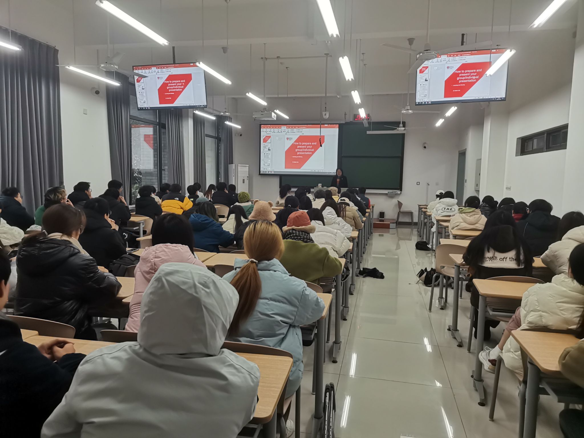 远道而来的蔡慧芬博士用流利的英语,传授了同学们如何准备和展示个人和小组演示的方法。讲座开始之初,蔡慧芬博士通过抽选同学互动用英语介绍自己,让现场的氛围更加活跃。关于如何准备和展示,老师建议从多方面入手,运用准确的句式和表达方式。在展示部分,礼仪和精气神十分重要,从语气便可以看出自信与否。本次讲座使同学们受益匪浅,让人能更加自如面对此类情况。