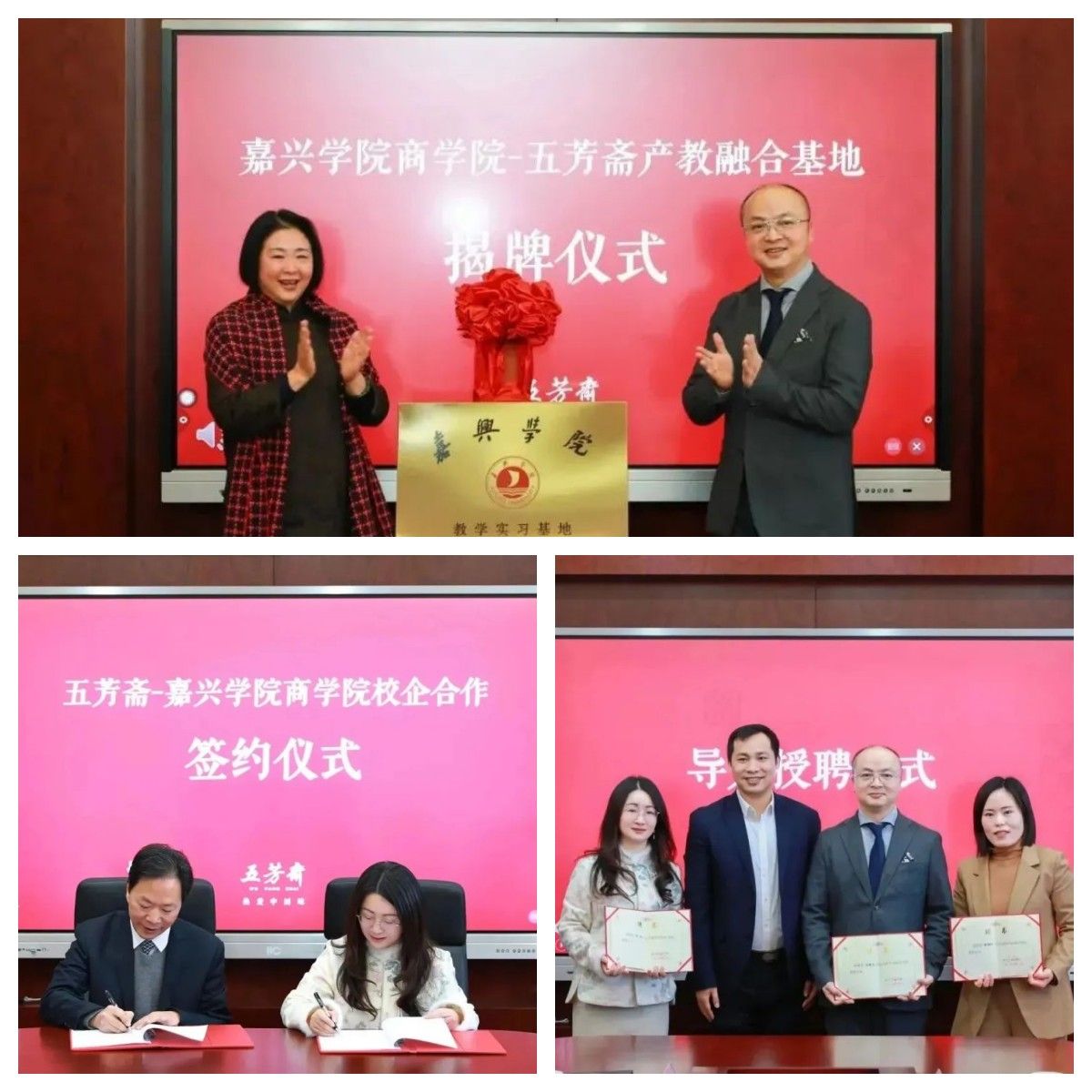 与此同时,嘉兴pg麻将胡了2 pg麻将胡了2 特聘五芳斋实业总经理马建忠先生、实业副总经理徐炜女士和人力资源总监黄锦阳女士为校外导师,翁胜斌副院长授予导师聘书,标志着校企合作讲师互聘迈出第一步,下一步双方将搭建校企合作平台,推进产教融合。