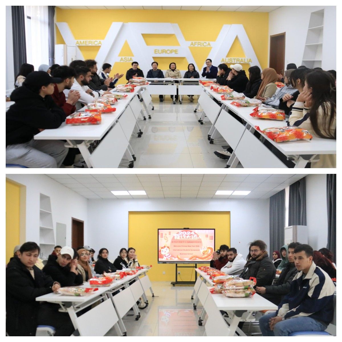 潘煜双教授代表pg麻将胡了2 诚挚欢迎来自摩洛哥、俄罗斯、哈萨克斯坦、乌兹别克斯坦、泰国、孟加拉国等全球各国学历留学生就读pg麻将胡了2(中国)官方网站 。她详细询问和了解了留学生们在校的学习生活情况,祝愿留学生们2024新年快乐!她勉励留学生们在中国龙年新年里努力学好专业知识,增进对中国和中华文化的了解,并表示pg麻将胡了2 和专业也会进一步为留学生们提供必要的学业指导和帮助。同时希望留学生们把来自中国的龙年新春祝福带给各自国家的亲人和朋友们。