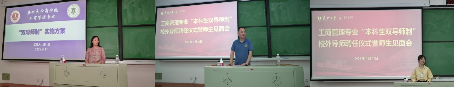 工商管理专业负责人唐雯深入介绍了“双导师制”实施方案,希望同学们在双导师指导下提升适应社会需求的各项技能。上海交大嘉兴科技园总经理、嘉兴南洋职业技术pg麻将胡了2 副校长许昱捷作为校外导师代表发言,希望能够为同学们提供更多的实践经验和行业洞察。工商管理专业21级金舒怡作为学生代表发言,希望未来能与行业专家们深入交流,有效提升实践能力。