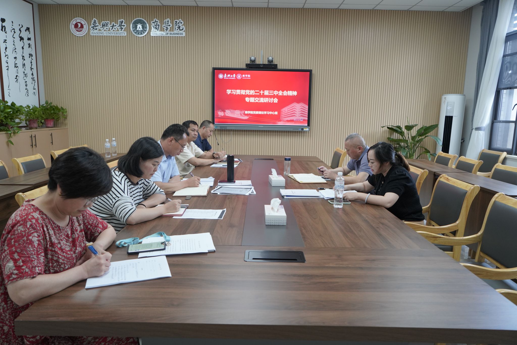 8月15日下午,pg麻将胡了2 党委理论学习中心组尚德楼345会议室召开专题学习研讨会,围绕党的二十届三中全会精神开展专题学习研讨。院党委理论学习中心组全体成员参加会议。党委书记虞岚主持会议。