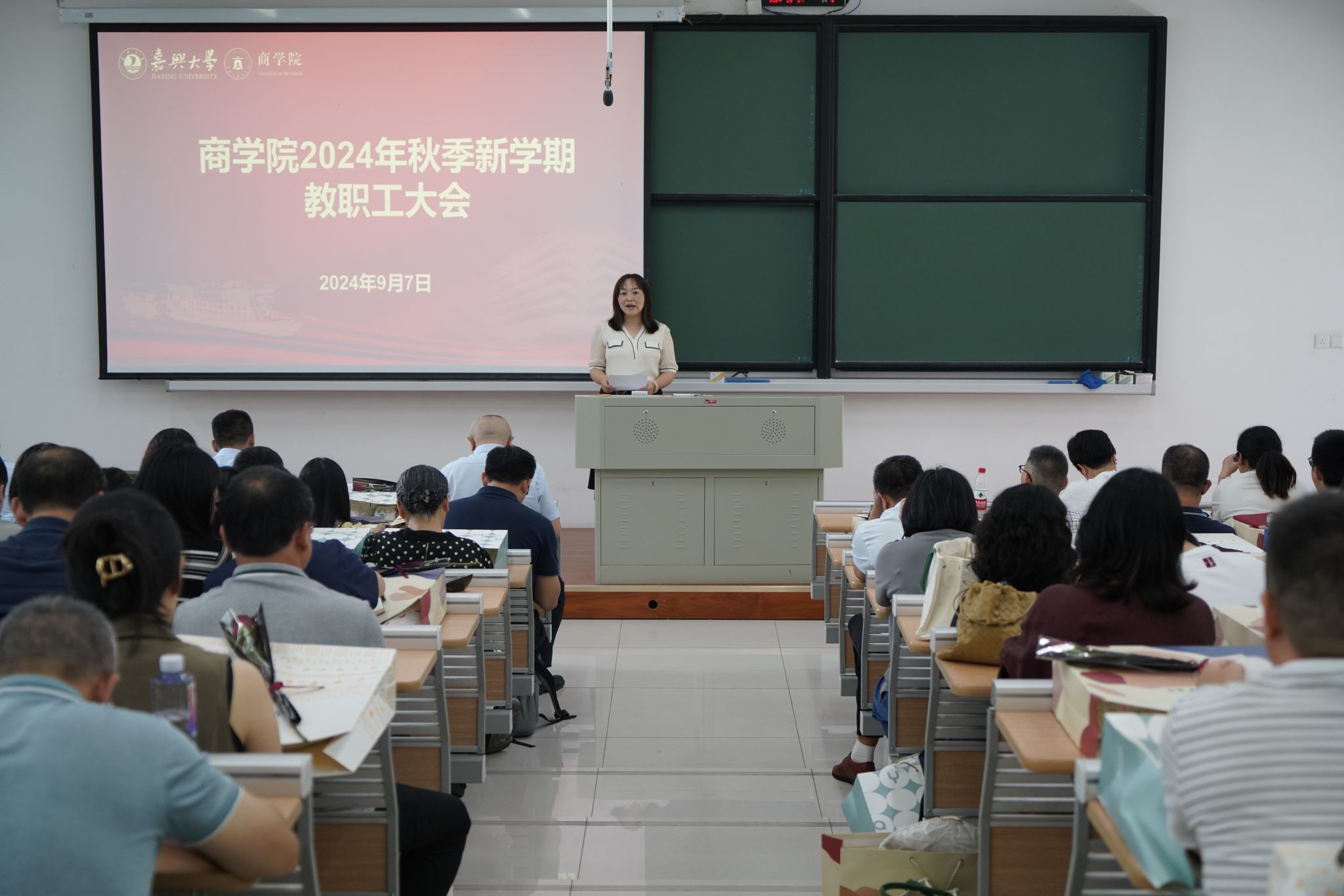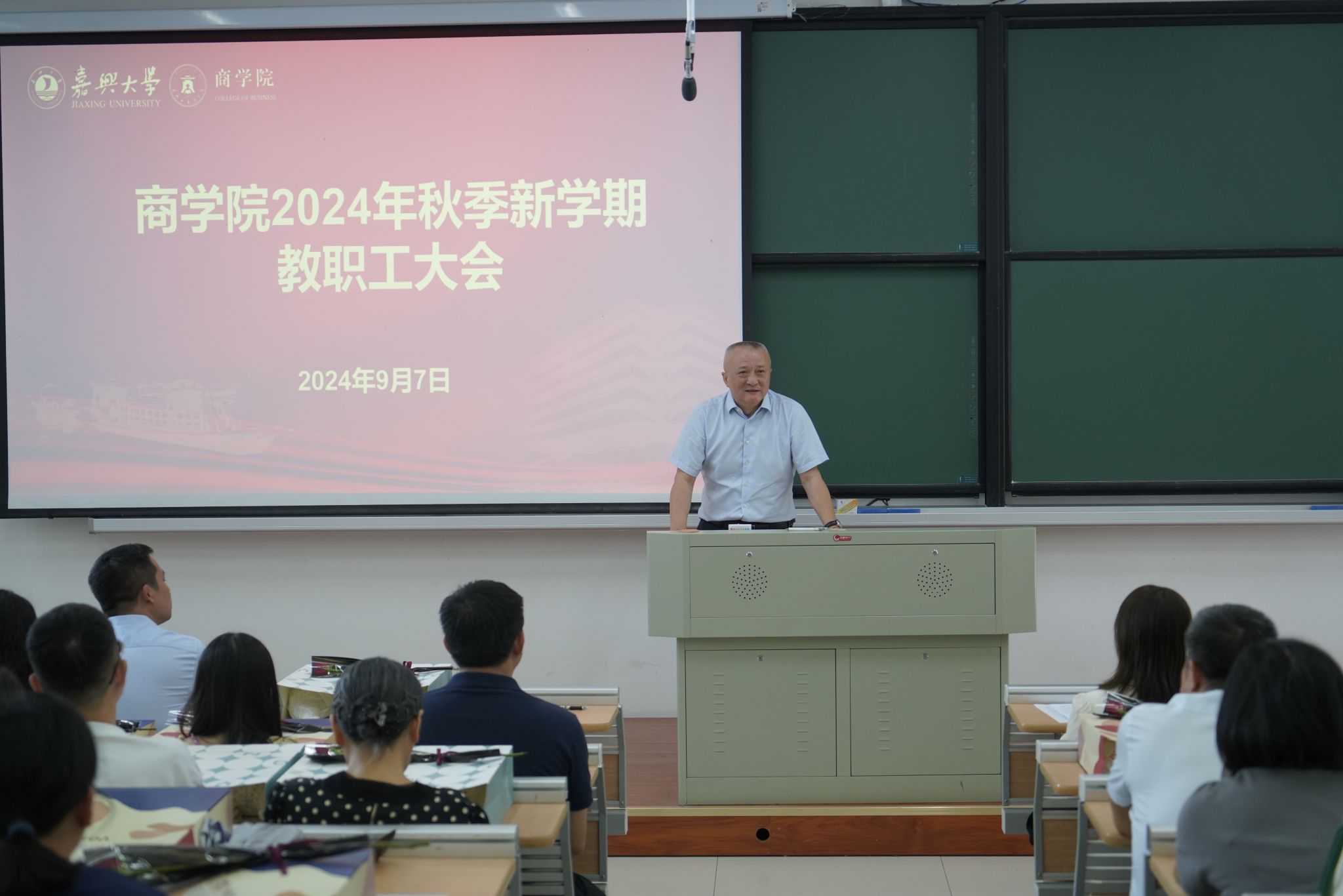 9月7日上午,pg麻将胡了2 在明德楼140召开新学期全体教职工大会。会议由院党委书记虞岚主持。