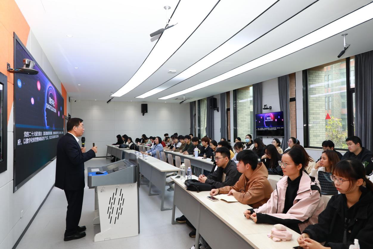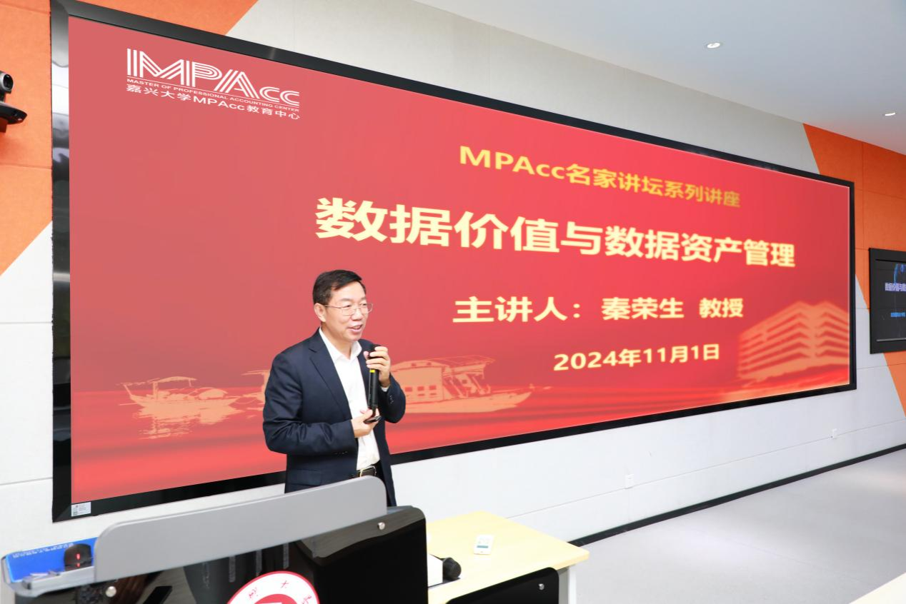 11月1日,pg麻将胡了2 举办“MPAcc名家讲坛”第十一期,本次名家讲坛特邀现任十四届全国政协委员、全国会计专业学位研究生教育指导委员会委员、北京国家会计pg麻将胡了2 原院长、党委书记秦荣生教授为2024级会计硕士研究生主讲题为《数据价值与数据资产管理》的学术报告,报告会由MPAcc教育中心主任潘煜双主持。
