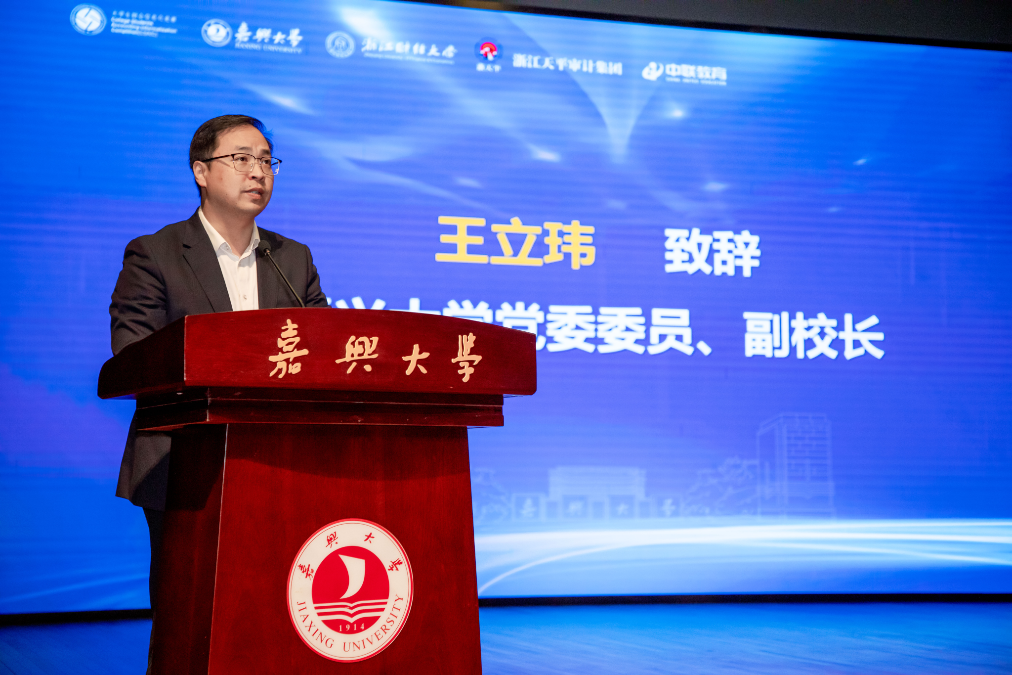 嘉兴大学党委委员、副校长王立玮致欢迎辞,阐述了财会信息化竞赛对财会专业人才培养的深远意义,指出我校高度重视科技竞赛工作,坚持“以赛促教、以赛促练”,增强学生的实践能力和创新能力。
