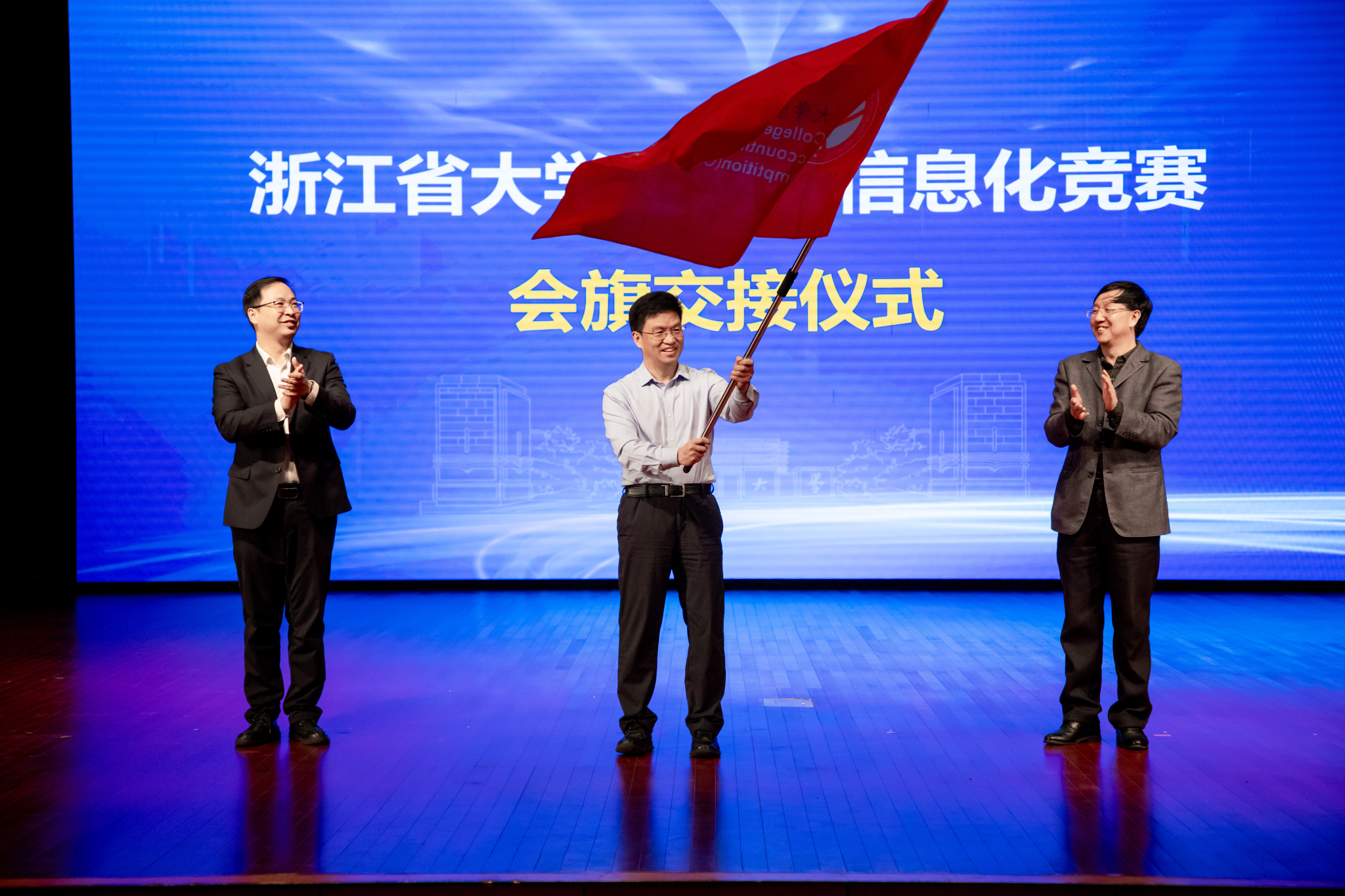 闭幕式上还进行了会旗交接仪式,第二十二届竞赛承办单位上海财经大学浙江pg麻将胡了2 副校长邱风代表下届承办单位讲话,他代表上海财经大学浙江pg麻将胡了2 承诺将全力以赴筹备好下届竞赛,并诚挚邀请各位领导、老师和同学明年赴上海财经大学浙江pg麻将胡了2 参赛。