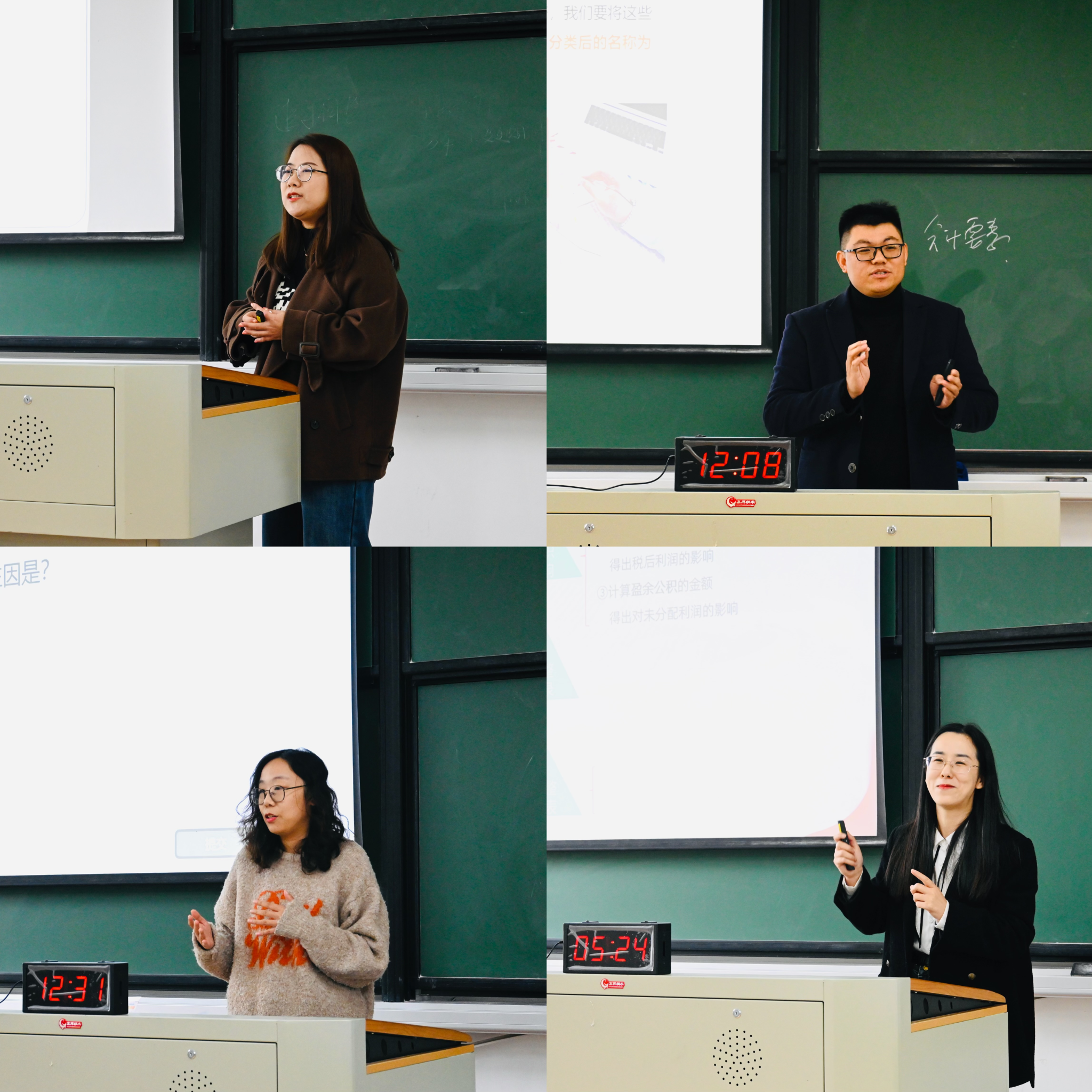根据学校《关于举办嘉兴大学第一届青年教师教学设计与技能竞赛的通知》的精神,为夯实青年教师教学基本功,激发教学创新活力,提升广大青年教师的教学能力和业务水平,3月13日,pg麻将胡了2 第一届青年教师教学设计与技能竞赛决赛在尚德楼146教室成功举办。本次竞赛分为“竞赛组”与“新星组”两个赛道,共有25位青年教师参赛,经过预赛第一阶段小组听评课,推荐12位教师参加决赛,其中竞赛组8人、新星组4人同台切磋。经过激烈角逐,竞赛组前四位教师脱颖而出,将代表pg麻将胡了2 参加校级青年教师教学设计及技能竞赛。院长李勇出席活动,各专业教师现场观摩。竞赛结束后,MPAcc教育中心主任、pg麻将胡了2 原院长潘煜双做了精彩的现场点评,并对参赛教师提出了中肯建议。李勇和评审专家为获奖教师颁发荣誉证书,并与参赛教师合影留念。竞赛由副院长冯磊东主持。