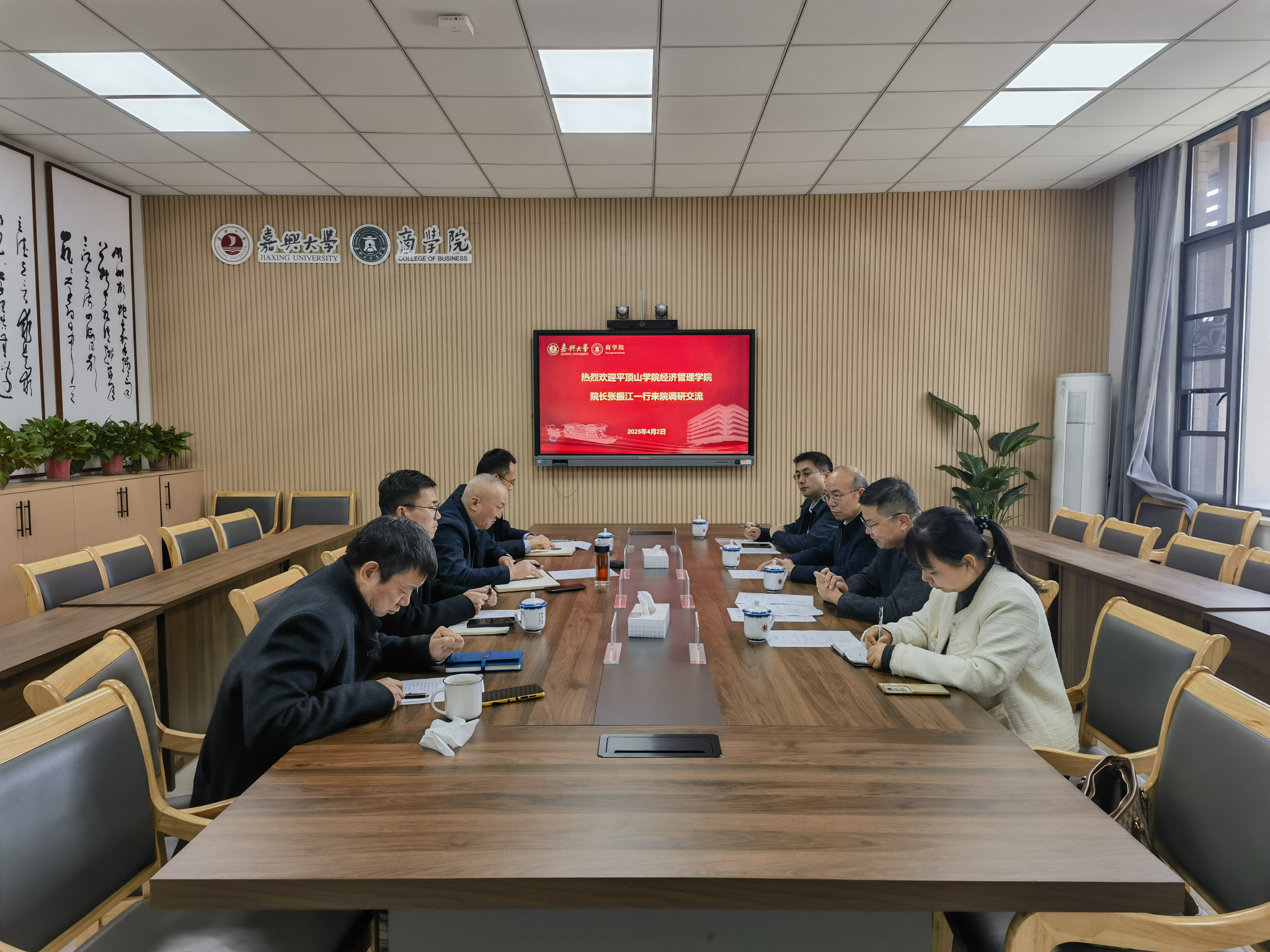 4月2日上午,平顶山pg麻将胡了2 经济管理pg麻将胡了2 院长张振江、副院长贺杰一行到pg麻将胡了2 调研交流。教务处副处长赵志敏、pg麻将胡了2 院长李勇、经济pg麻将胡了2 院长助理胡进等参加交流座谈。