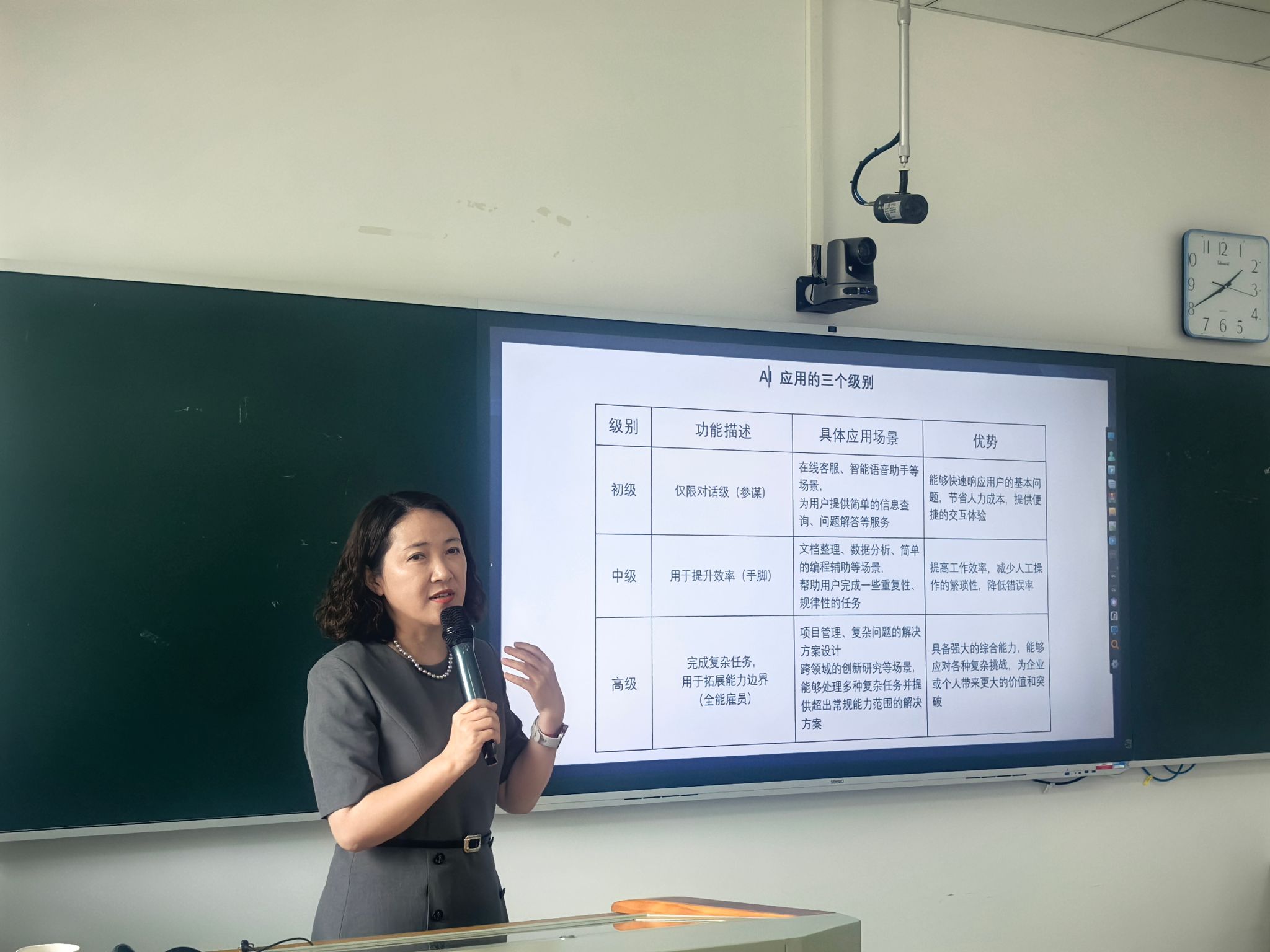安娜以“从学生成长角度看AI赋能课堂”为主题,结合《现代推销学》课程实际,从课前、课中和课后三个方面介绍了AI如何精准评估学生表现,优化教学反馈,助力个性化教学方案的制定,进一步提升教学质量。