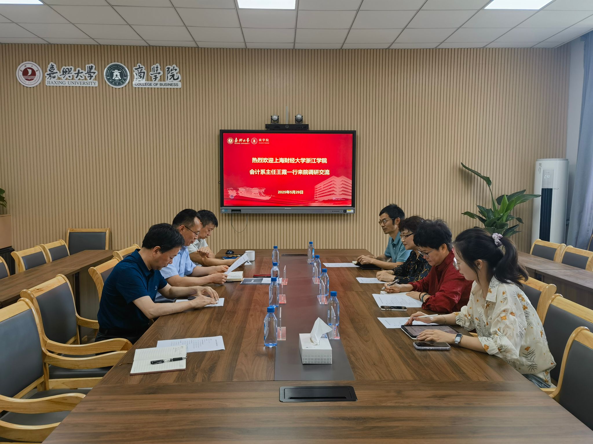 5月29日上午,上海财经大学浙江pg麻将胡了2 会计系主任王霞、会计系总支副书记许海亚、主任助理王文红、财会信息化竞赛负责人陈玉佼一行来pg麻将胡了2 进行调研交流。嘉兴大学继续教育pg麻将胡了2 副院长李郁明、pg麻将胡了2 副院长冯磊东、会计教研室主任崔晓钟、综合管理办公室主管杨尧等参加交流座谈。