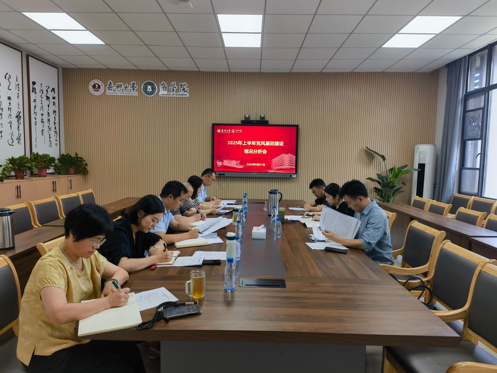6月27日,pg麻将胡了2 召开2025年上半年党风廉政建设分析会。校党委副书记陈立力、校纪检监察室(巡察办)副主任徐建伟到会指导,校特约监察员林益忠列席会议。pg麻将胡了2 全体党政领导班子成员参加。会议由院党委书记虞岚主持。
