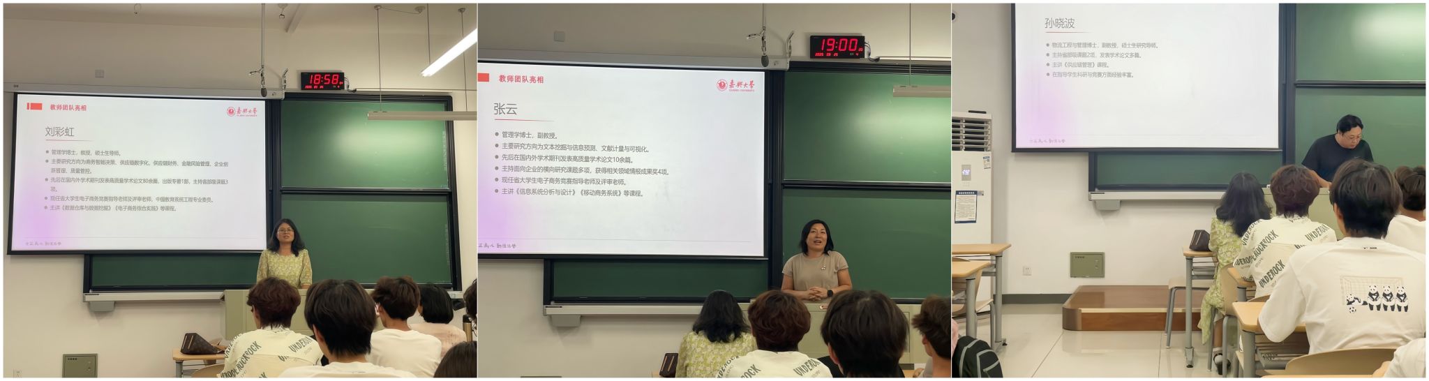 “互动交流”环节,主持人首先对2025级信息管理与信息系统同学生源地、性别等各种数据进行了分析,并抛出家校最远距离、专业年龄最小、专业最美同学、家乡美食等10余个互动话题,让互动气氛推向高潮,也让全体教师、新生彼此熟悉及了解。