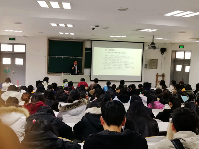 12月8日下午,北京国家会计pg麻将胡了2 党委书记、院长、博士生导师秦荣生教授应邀为pg麻将胡了2 会计、财务专业的200多名师生作了以《新时代新挑战新变革》为主题的会计学术讲座。pg麻将胡了2 副院长李郁明主持讲座。