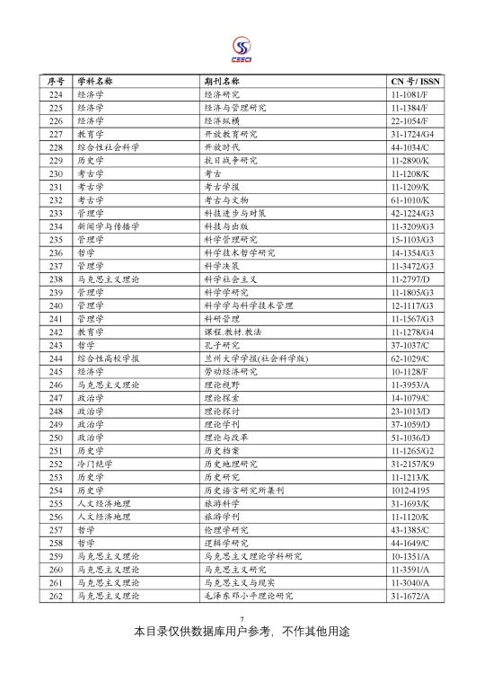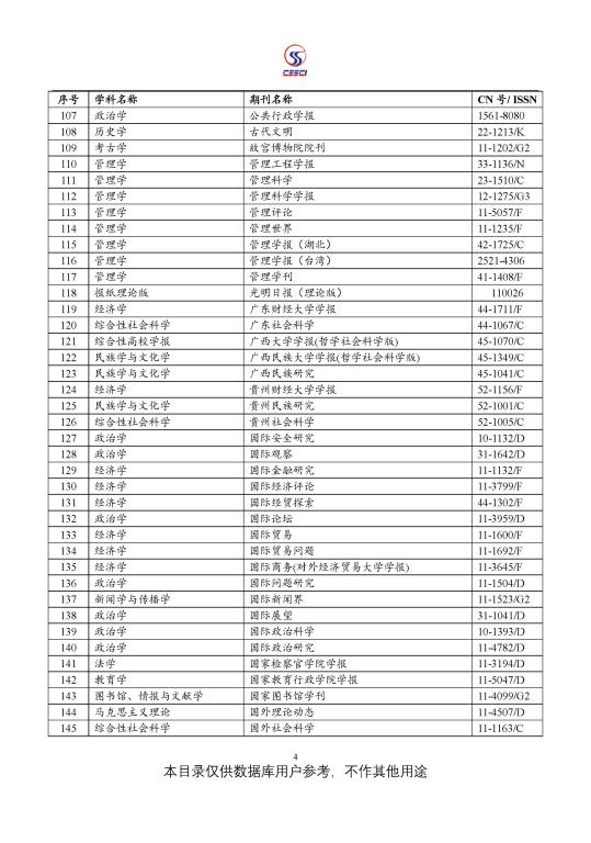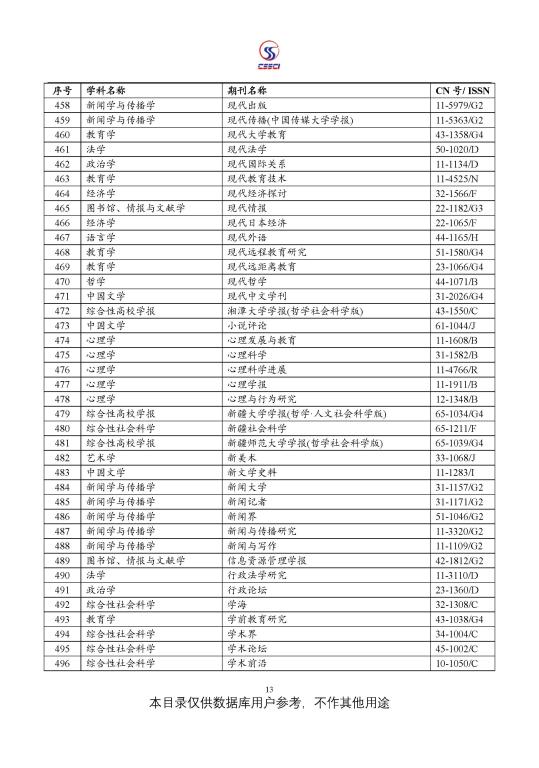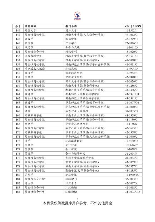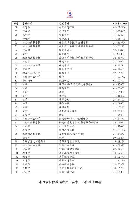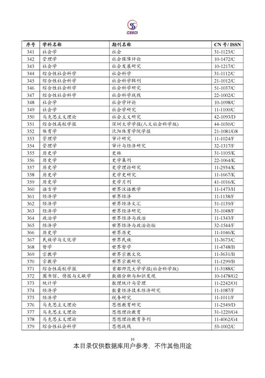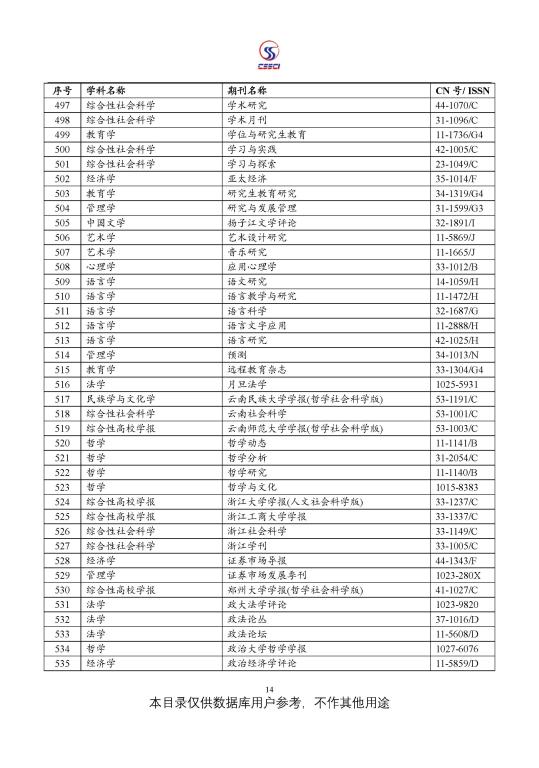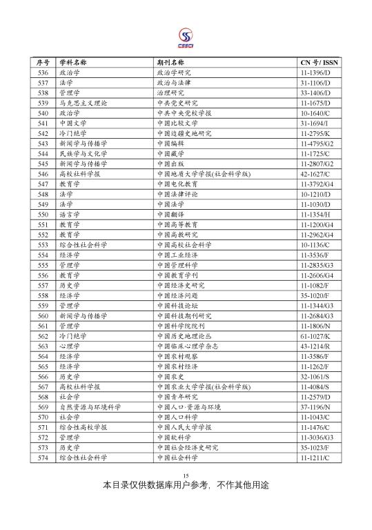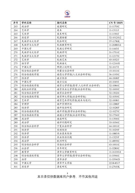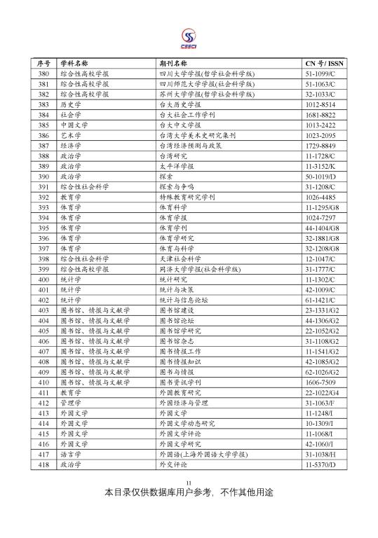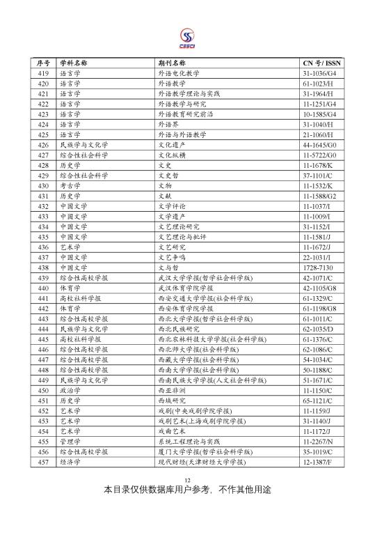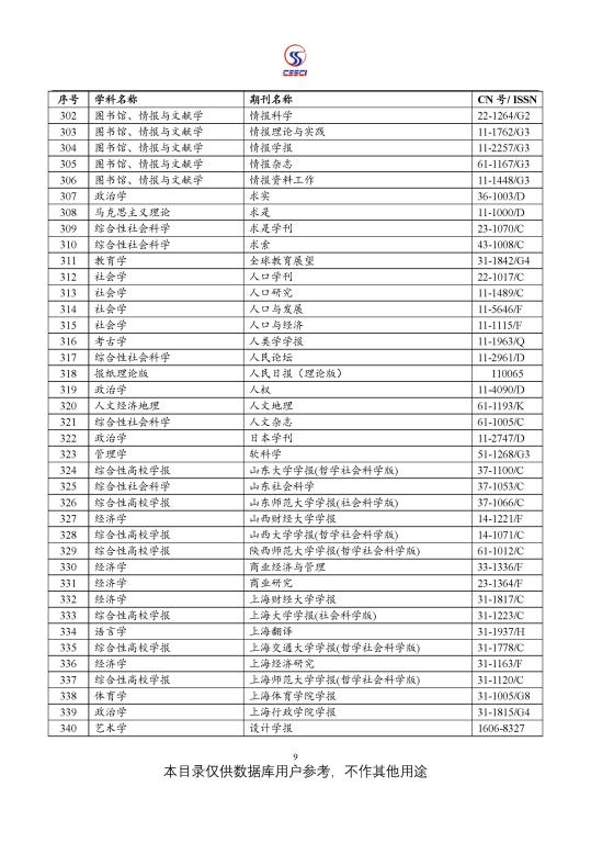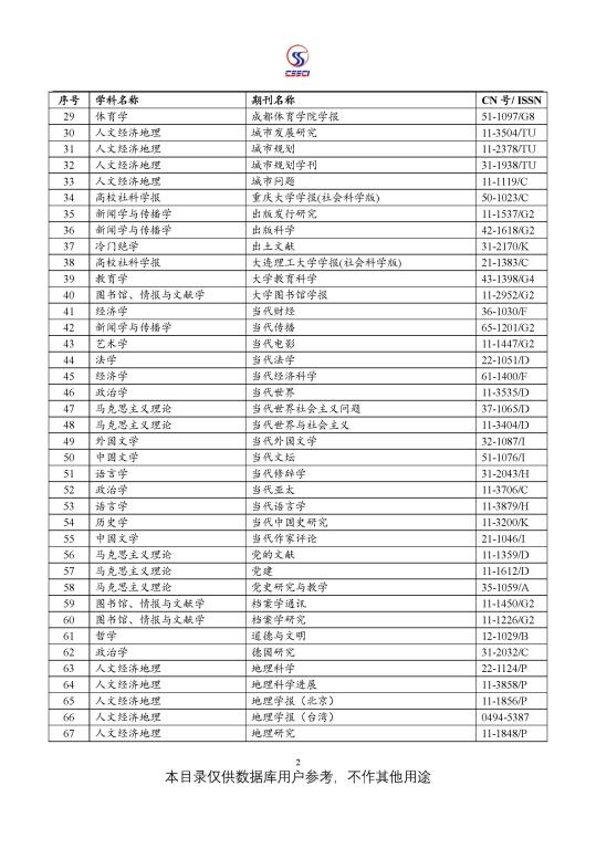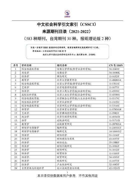 中文社会科学引文索引(CSSCI) 来源期刊目录(2021-2022)